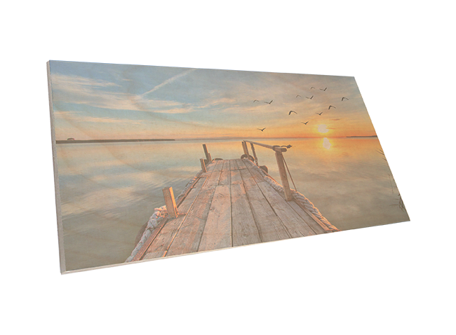 The image is printed directly onto the natural wood for the wood grain to show. Due to the natural wood, imperfections of the wood's surface will be visible through the image.