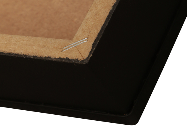Print will be laminated and then mounted Sides: 5cm high black frame with moulded plastic strip all around