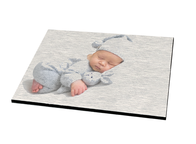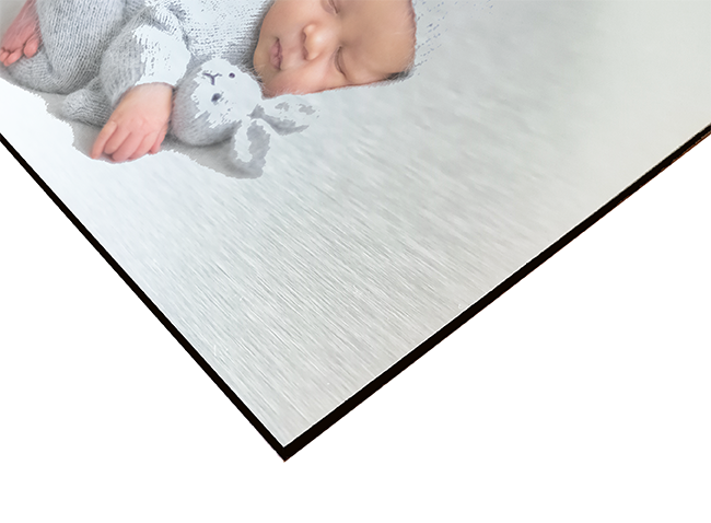 Print directly onto the Brushed Aluminium. The brushed base show due to no white ink being printed. The silver aluminum will appear in the areas where the white would usually be.