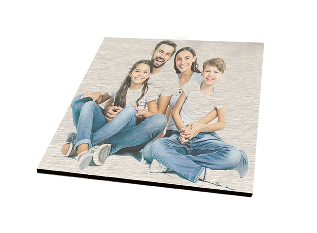 Print directly onto the Brushed Aluminium. The brushed base show due to no white ink being printed. The silver aluminum will appear in the areas where the white would usually be.