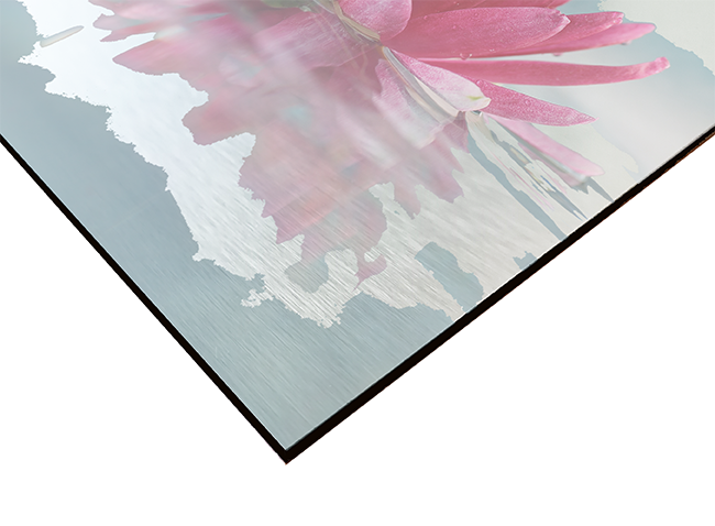 Print directly onto the Brushed Aluminium. The brushed base show due to no white ink being printed. The silver aluminum will appear in the areas where the white would usually be.
